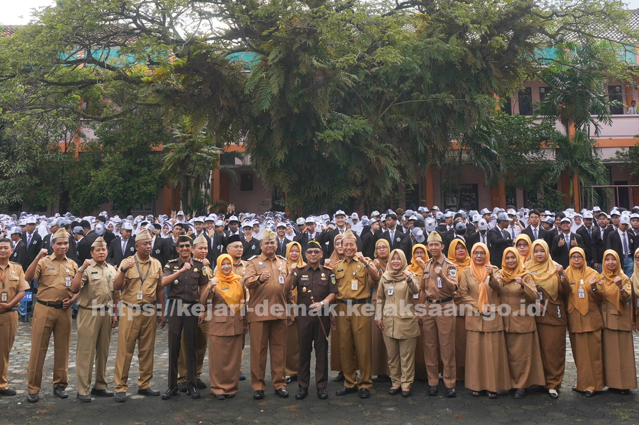 Demak – Apel Kebangsaan dilaksanakan pada Senin, 13 April 2026 pukul 07.00 WIB, di lapangan tengah SMA Negeri 1 Demak dengan pembina apel Kepala Kejaksaan Negeri Demak, Milono Raharjo, S.H., M.H. Kegiatan tersebut diikuti oleh siswa dengan mengenakan seragam OSIS lengkap serta turut dihadiri oleh Kepala Dinas Kesbangpol, Kepala Dinas Pendidikan, dan Cabang Dinas Wilayah I Provinsi Jawa Tengah atau yang mewakili.