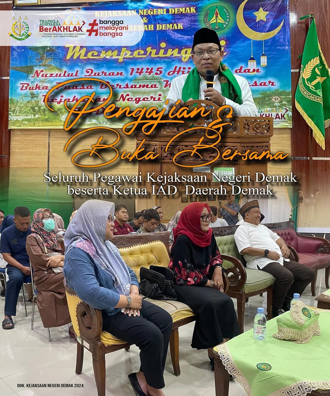 Rabu, (27/3) – Kejaksaan Negeri Demak dan Ikatan Adhyaksa Dharmakarini Daerah Demak memperingati Nuzulul Quran 1445 Hijriyah dan Buka Puasa Bersama Keluarga Besar Kejaksaan Negeri Demak dan IAD Daerah Demak.